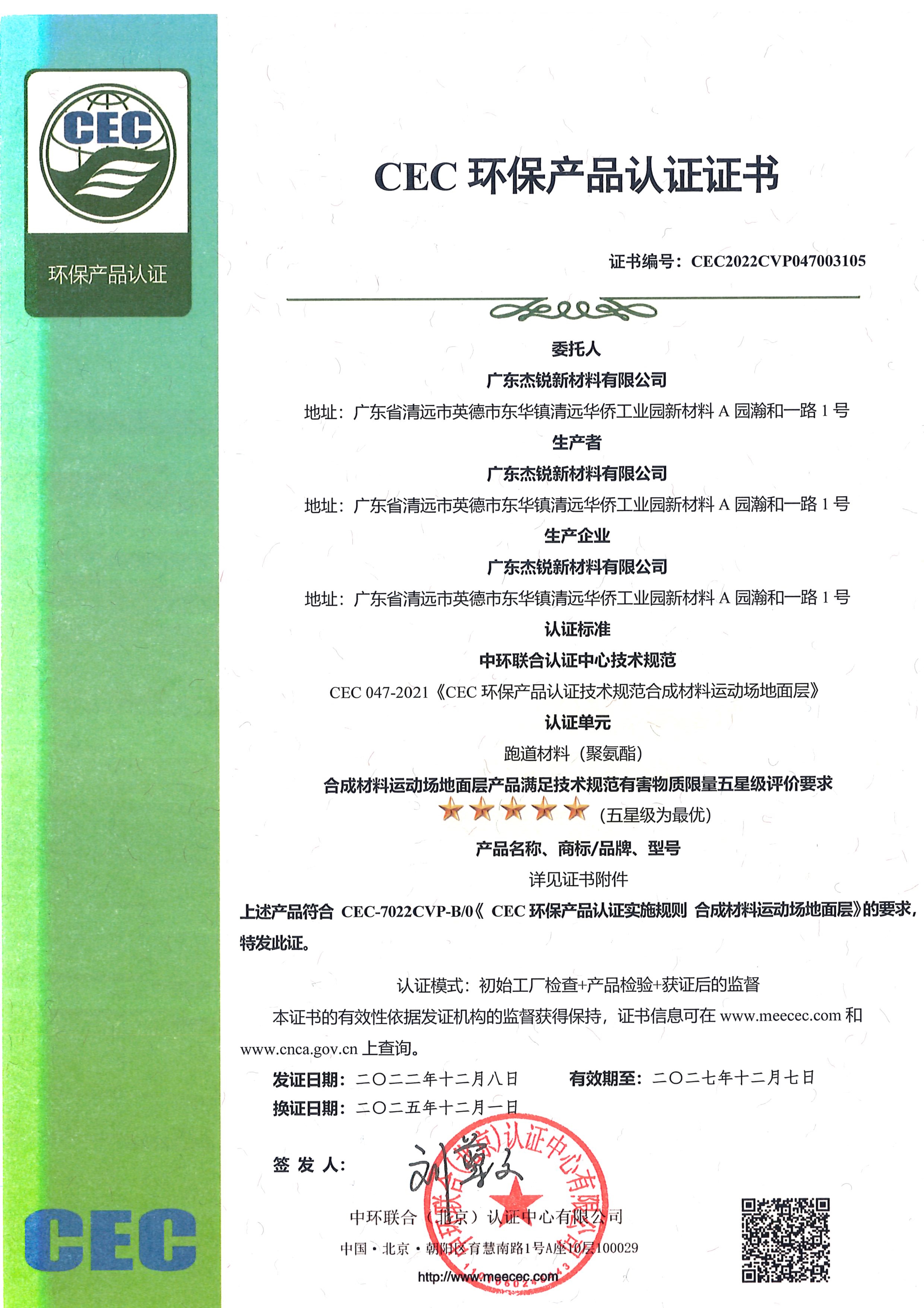 绿色产品等级证书