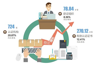 随着“放管服”改革持续推进,认证市场准入不断优化,认证机构、认证证书、获证组织数量保持稳定增长,认证服务供给能力显著增强。