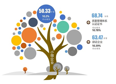 截至2020年底,累计发放质量管理体系认证证书共计68.74万张,同比增长10.78%。获证企业共计63.47万家,同比增长10.39%。获得质量管理体系认证的小微企业共计50.33万家,同比增长10.2%,占全部获证企业的79.3%。