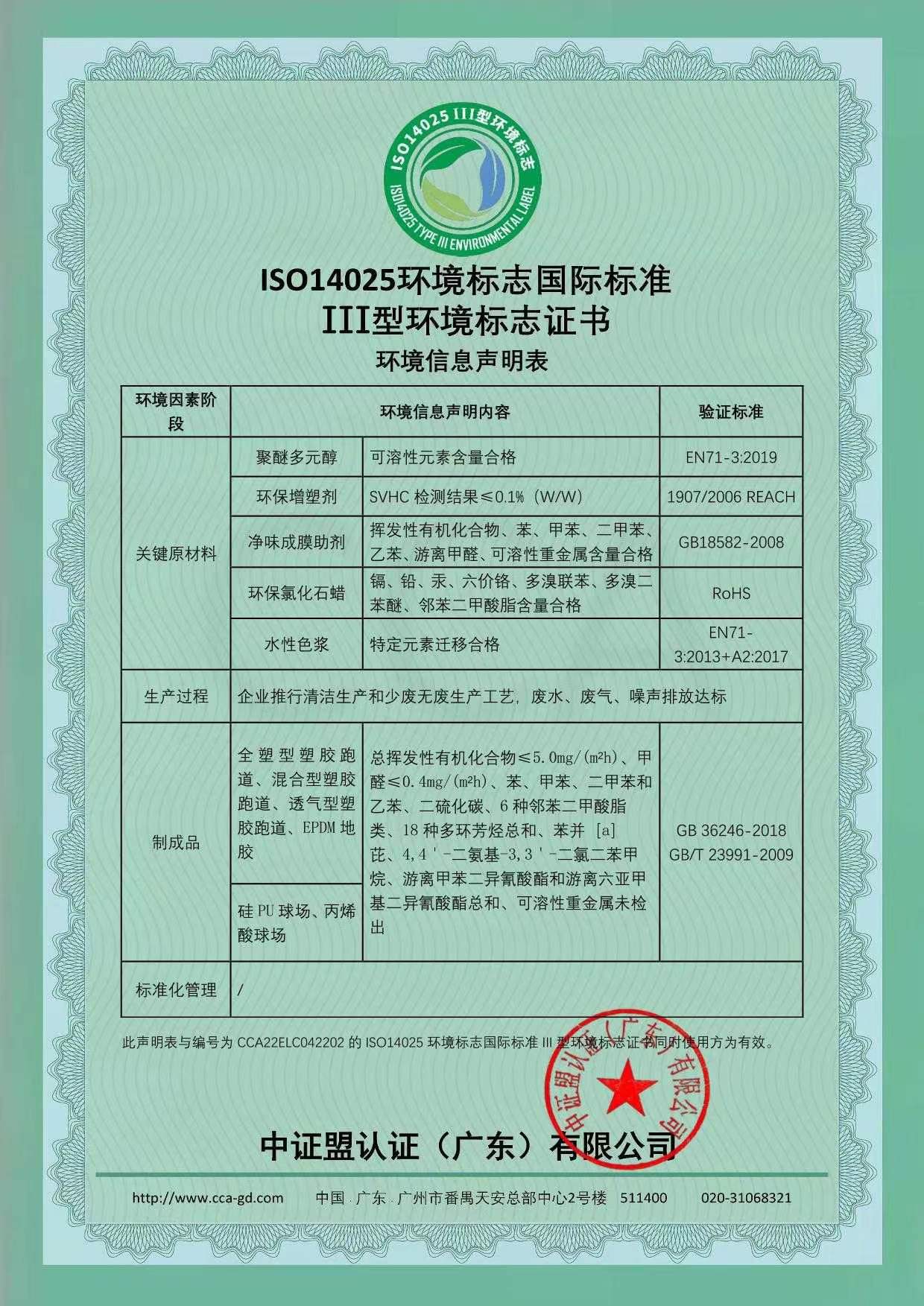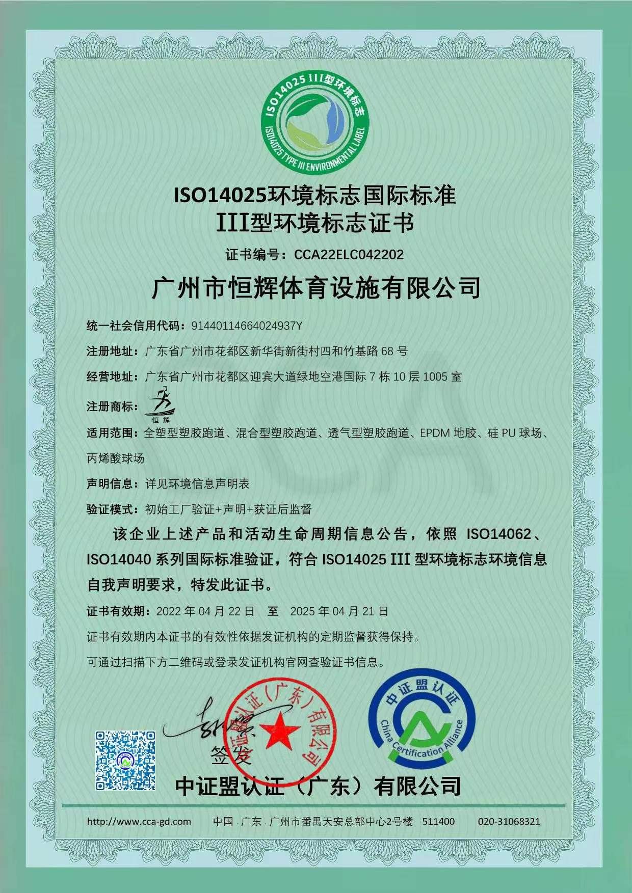 广州市恒辉体育设施有限公司顺利获得III环境标志证书