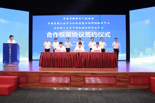 2021年6月28日,公共应急业务检测中心(许昌)揭牌仪式在许昌市魏都区高新技术产业园举行。同期,中国质量认证中心公共应急评测操作中心(以下简称“操作中心”)同许昌市魏都区人民政府、北京理工大学中原阻燃材料研究中心签署三方合作框架协议。中心主任谢肇煦、武汉分中心相关负责人代表操作中心参加活动。中国工程院院士王玉忠、许昌市人民政府副书记、市长史根治,副市长赵淑红,许昌市政协副主席、许昌学院副院长郑直,魏都区区委书记李朝锋,区长何长成以及北京理工大学邹美帅、杨荣杰等领导、专家出席相关活动。