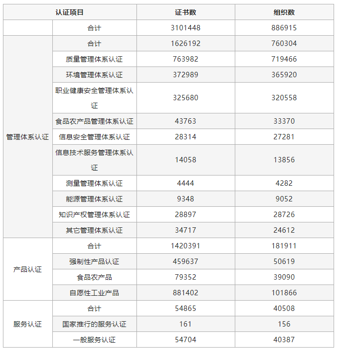 截至2022年3月,我国有效认证证书数为302万张,获证企业数为87万家。